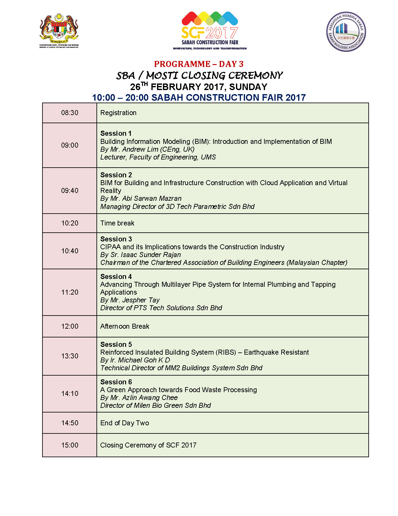 Sunday, 26th Feb 2017 Closing Ceremony